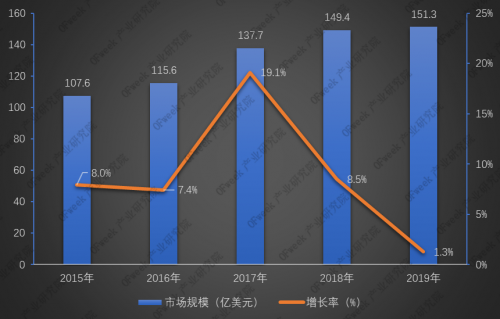 2015-2019年全球激光器市場(chǎng)規(guī)模及增長(zhǎng)情況